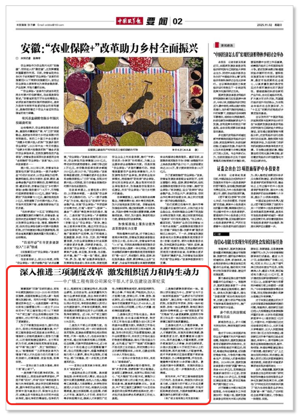 中国改革报聚焦报道中广核工程深入推进三项... 近日,《中国改革报》以《深入推进三项制度改革 激发组织活力和内生动力》为题,聚焦报道中广核工程有限公司深化干部人才队伍建设...